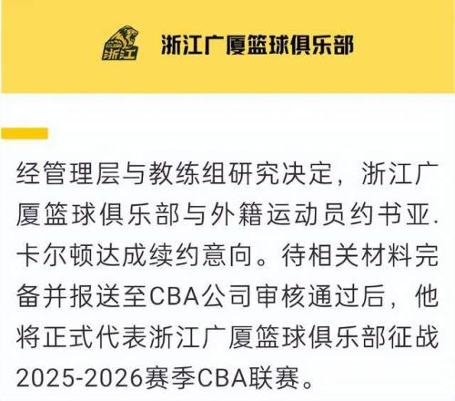 CBA最新消息!浙江广厦官宣外援,威金顿加盟广州男篮